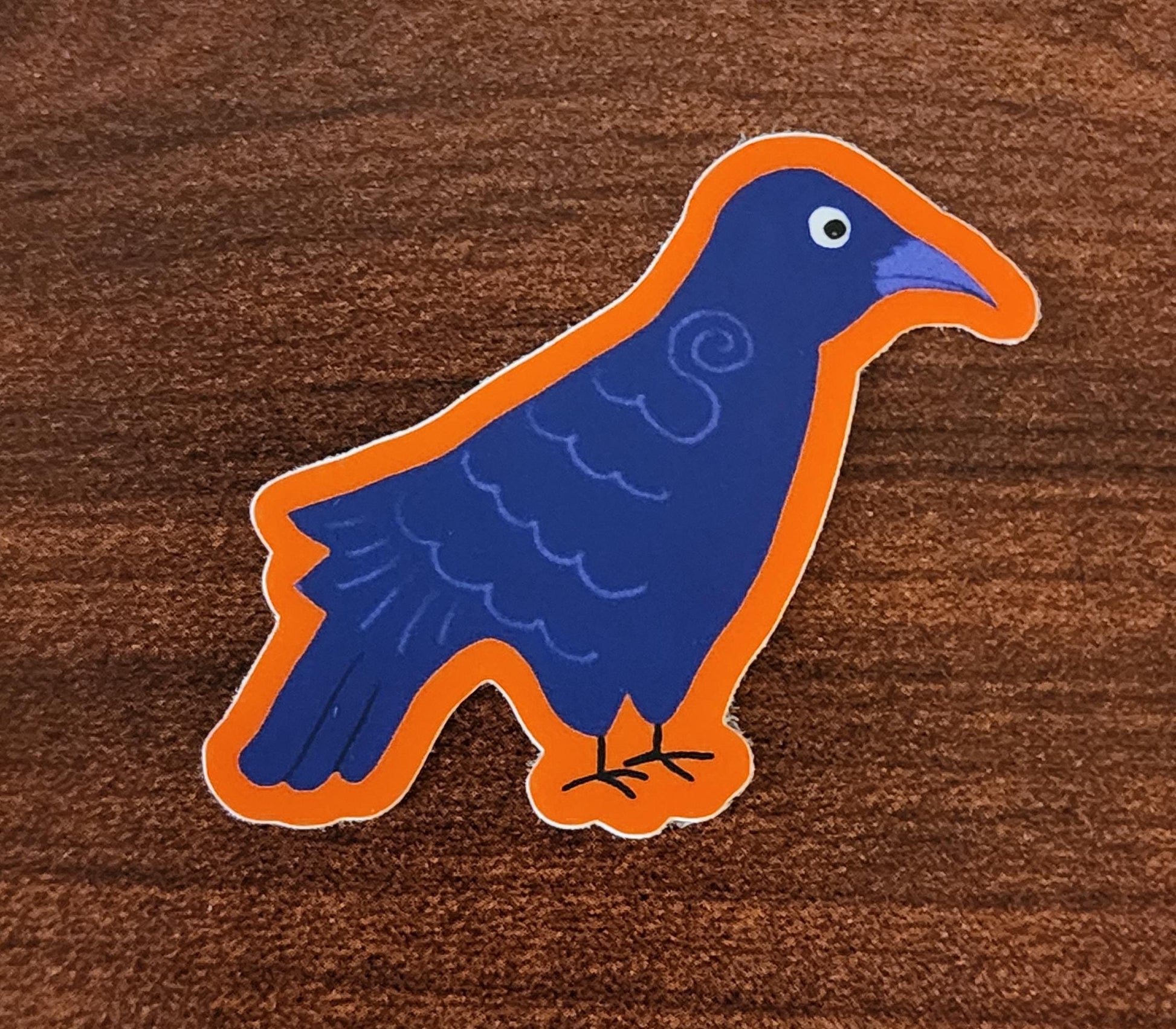Sticker, Deep Blue Crow With Orange Border, Vinyl, Die-Cut, 2 Inch